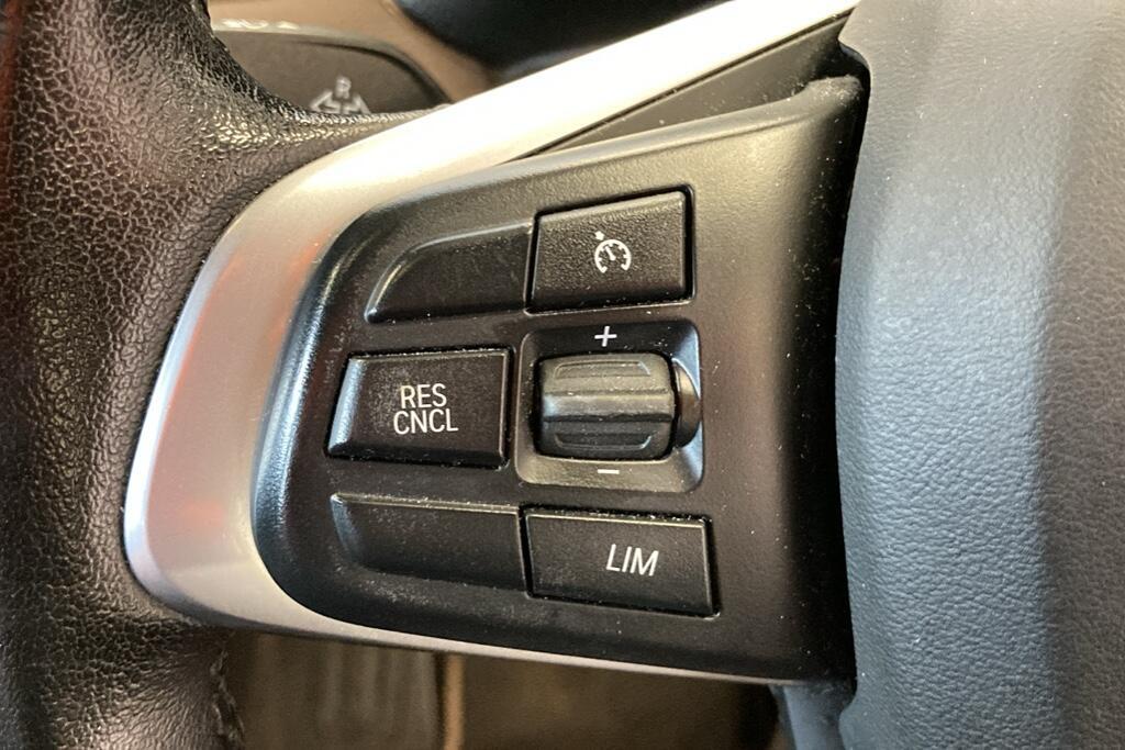 features 40-20-40 manually split folding rear seats, automatic two-zone air conditioning, free-standing adjustable front armrest, automatic tailgate, auto-dimming rearview mirror, full black leather interior, contrast stitching matching the upholstery, front door sill finishers with BMW designation, extended lighting, extended storage, velour floor mats, illuminated glove box, grab handles, instrument cluster, LED ambient lighting in door trim, luggage compartment light and underfloor storage, multifunction steering wheel controls, rain sensor with automatic headlights, rear fog light, three rear headrests, sport multifunction leather steering wheel, stainless steel loading edge, manual front seats, start-stop system with Comfort Go keyless engine start, manual steering column adjustment, sun visors with vanity mirrors, and twin horns.